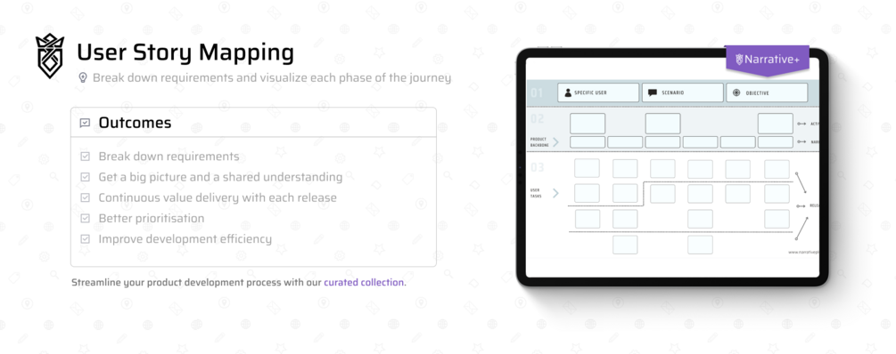 This tool helps teams effectively visualize and understand the user's journey, identify key activities that lead to the user's end goal, and segment the product into attainable and actionable work items. It also enables teams to prioritize and divide work into iterative releases, ensuring each release provides business value and is an improvement over the previous version. Additionally, it helps teams better understand the bigger picture and make sure not to miss any important parts of the journey. This results in a shared understanding of the product and its development process, and enables teams to make more informed decisions about product development. Overall, this tool improves the efficiency and effectiveness of the product development process.